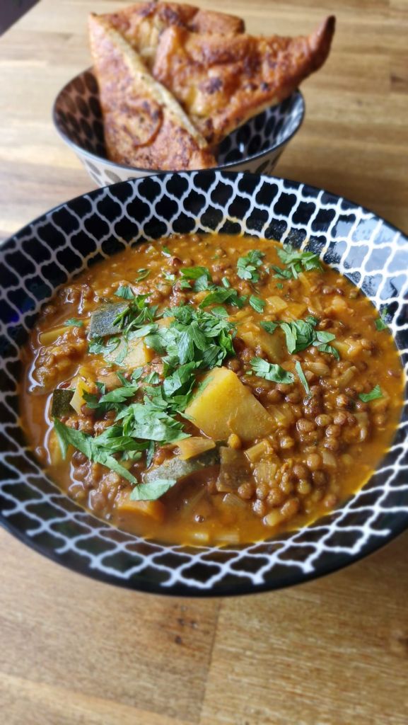 Gut umrühren. Jetzt soviel Wasser hinzugeben, dass die Linsen noch gut aufgehen können.